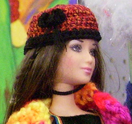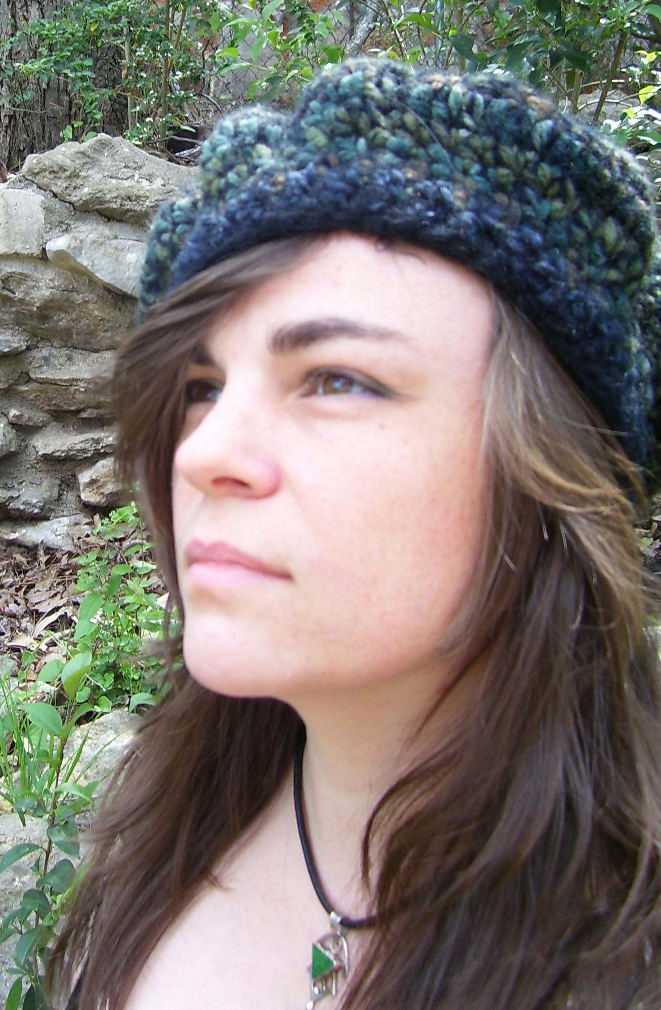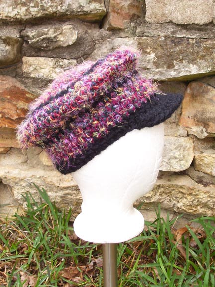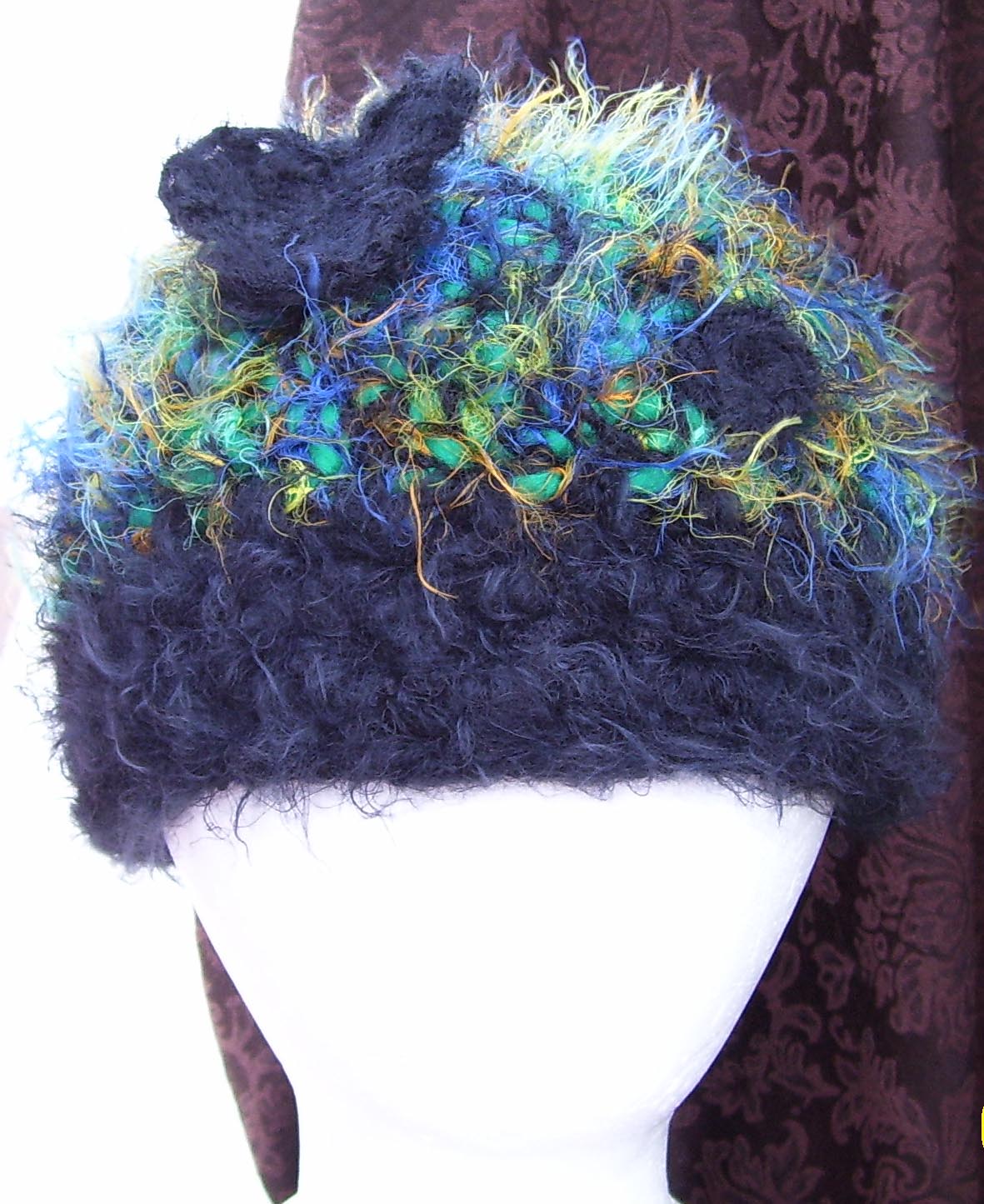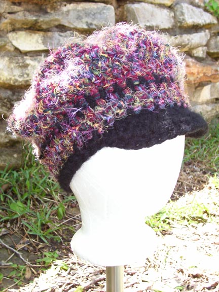 Dena and Chuck from Houston, TX were in Austin for a weekend get-away when they found The Artist's Market and Pixie Worx! Three hats and 24 hours later Dena is sporting her custom made squiggle hat, super soft black with rainbow influences! |